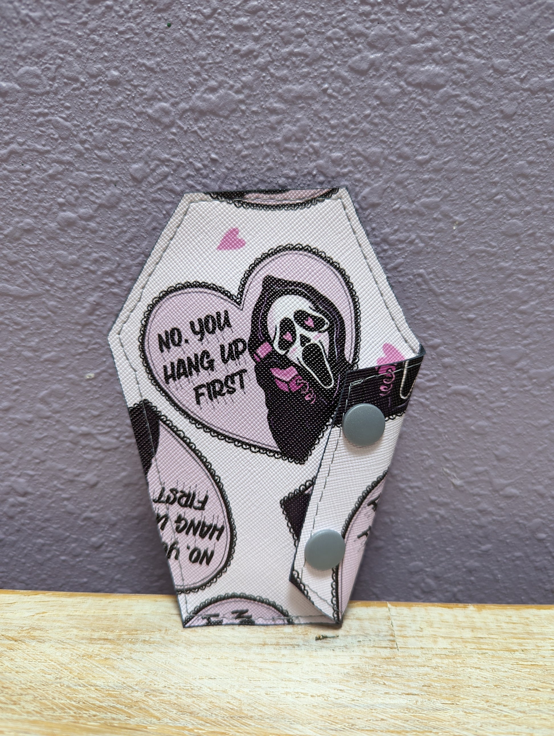 This Mini Coffin is the perfect little pouch for your spooky secrets! Carry small items in style, with this unique coffin-shaped pouch. Keep your items safe while adding an eerie touch to your look.