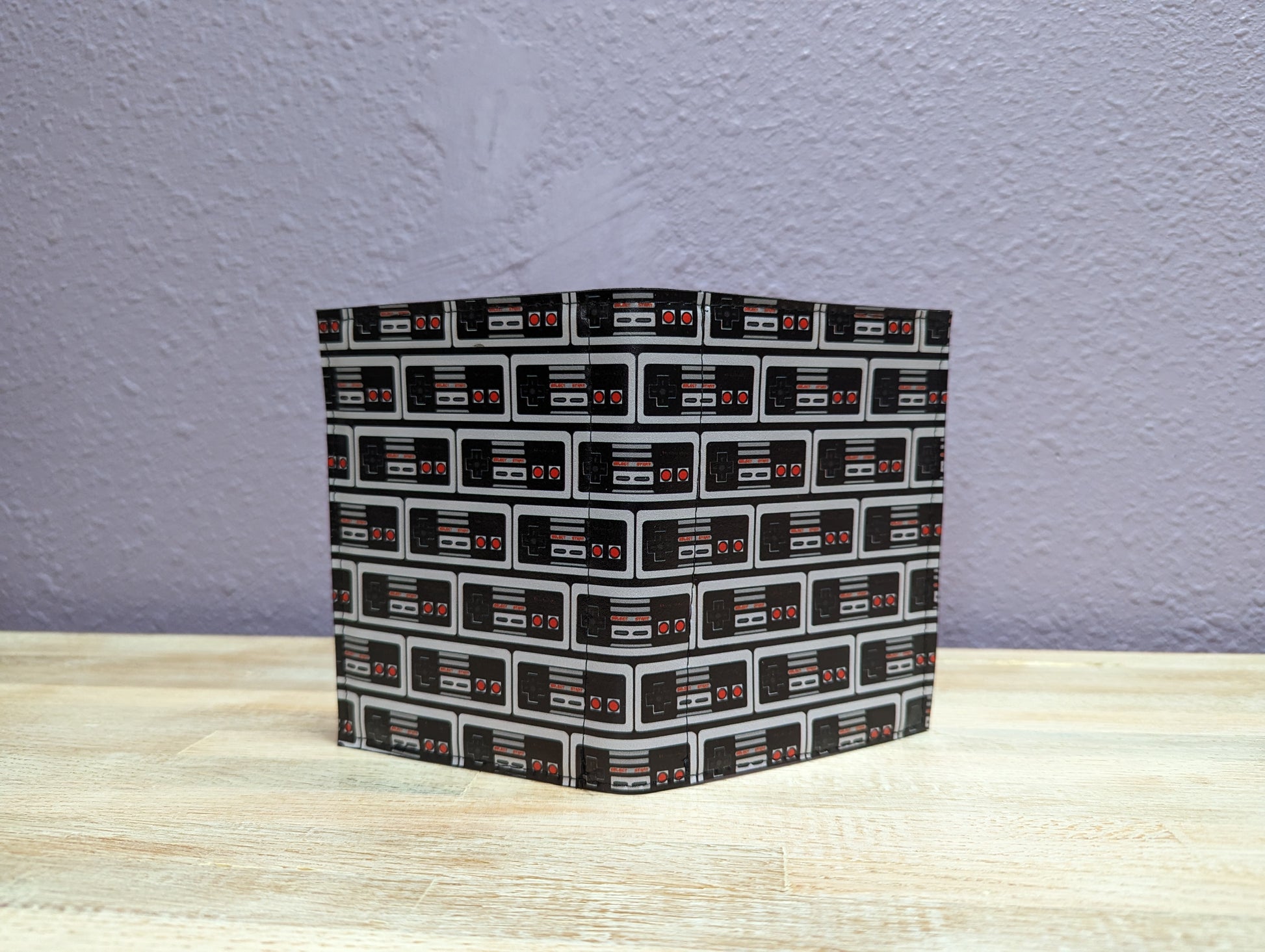 Handmade vinyl notepad holder features an interior pocket and elastic loop for your pen, and holds a top bound 3"x5" notepad.